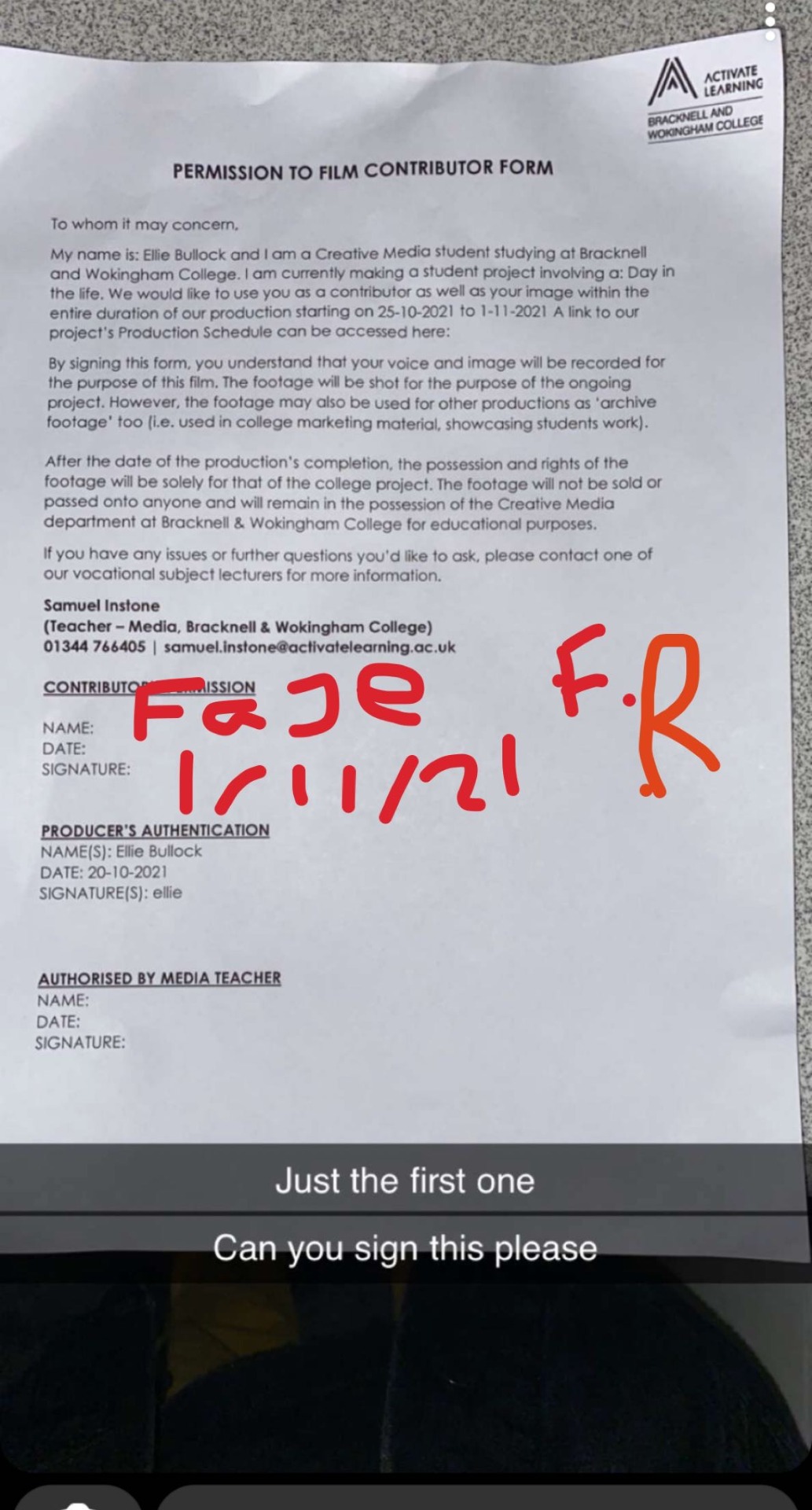 Permission to film forms: